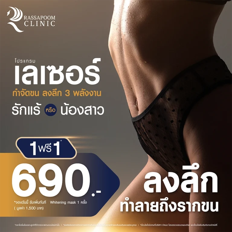 โปรแกรมเลเซอร์กำจัดขน 690.- 1 ฟรี 1 (แถม Whitening Mask 1,500)