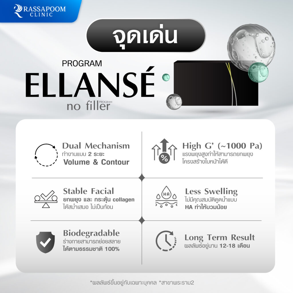 ปรับโครงสร้างใบหน้าด้วย โปรแกรม ELLANSE ให้นวลเนียน กระชับ และลดอาการบวมหลังการทำเติมได้ดี.
